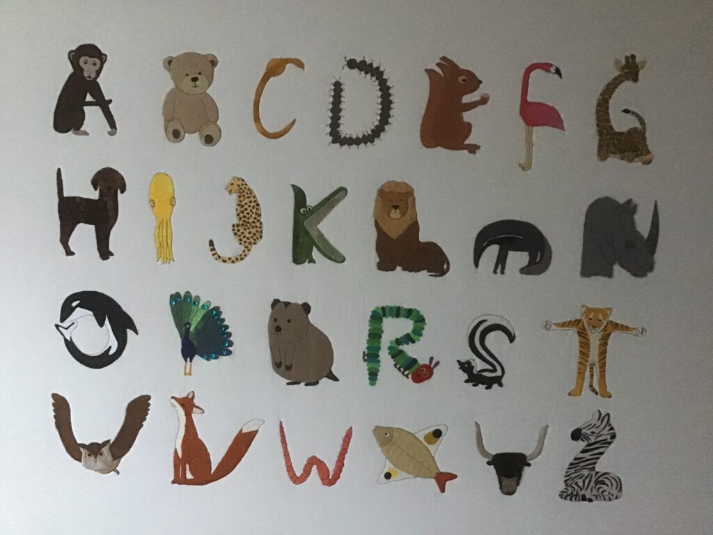 28 maart 2026. De appelbloesem is klaar op de voering na. De beslissing genomen om alleen de schutting door te stikken en de bloem- en gewone bladeren glad te laten. Verder een dieren alfabet gemaakt voor de nieuwe kleinzoon. Nu zet ik tot 1 mei geen nieuwe collage op: ik ga meedoen met een jaar cursus bij Hawar en wil ruimte in mijn hoofd hebben voor iets nieuws. Gelukkig is er genoeg te naaien aan kleding voor mezelf en kleinkinderen.